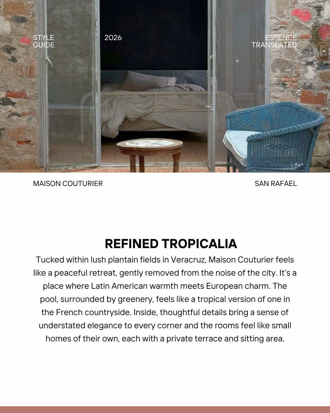 We share a deep passion for travel, design, and photography. Coming from opposite corners of the world — Mexico and Switzerland — we bring contrasting cultural perspectives and a broad, complementary vision.